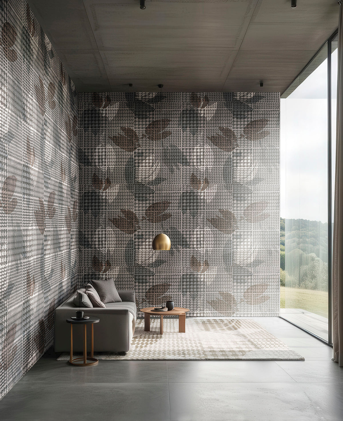 Ta wyjątkowa tapeta dekoracyjna w stylu pepitki z artystycznymi, malarskimi akcentami kwiatowymi to idealne połączenie elegancji, precyzji i kreatywności. Modularne, rozczłonkowane tło inspirowane klasycznym wzorem pied-de-poule zostało wzbogacone o subtelne, kwiatowe detale utrzymane w technice chiaroscuro. Dzięki temu kompozycja zyskuje głębię, dynamikę i efekt wizualnego ruchu, który zachwyca w nowoczesnych aranżacjach.